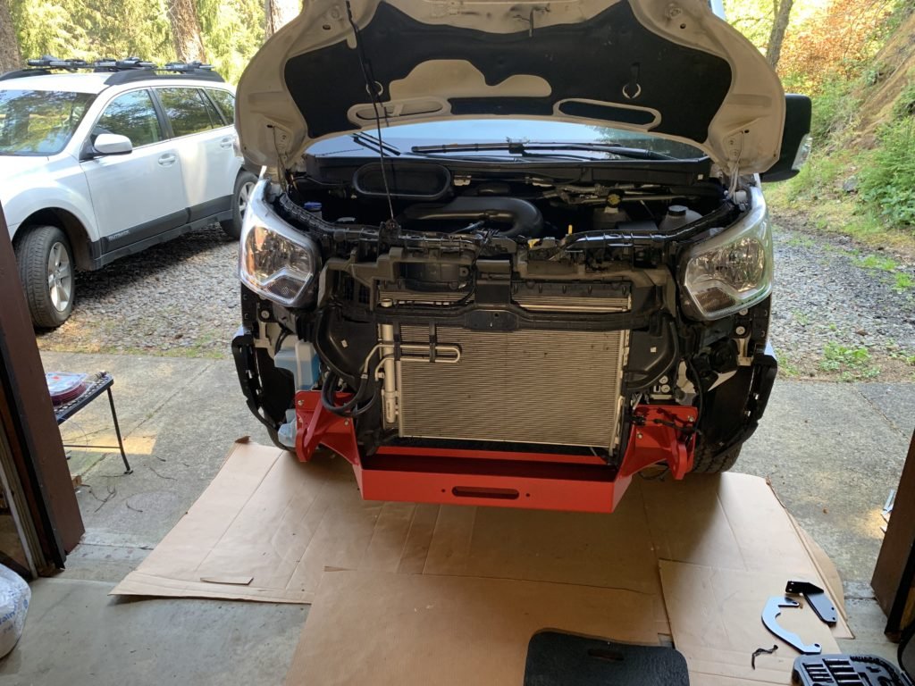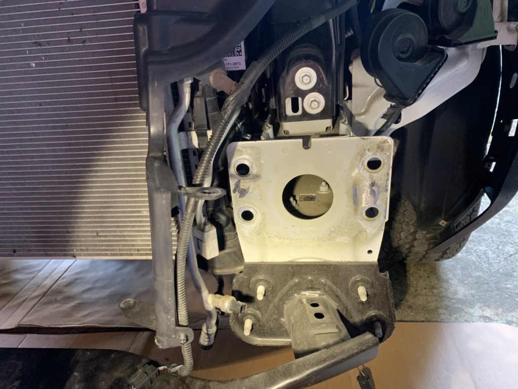 Once my winch arrived here in Oregon, I took to the cutting up of the front end to make way for the install. If you think cutting giant holes in your new vehicle is worrisome, try cutting out and up your bumper. The total install time was probably about 6 hours, but I didn’t spend all day on it. Instead, I did it over a couple of days. When it came time to cutting the large opening in the bumper, I wanted to be extra careful as I was already planning on doing something with it after. i didn’t like how exposed the radiator was and had planned on making some kind of cover with it.
