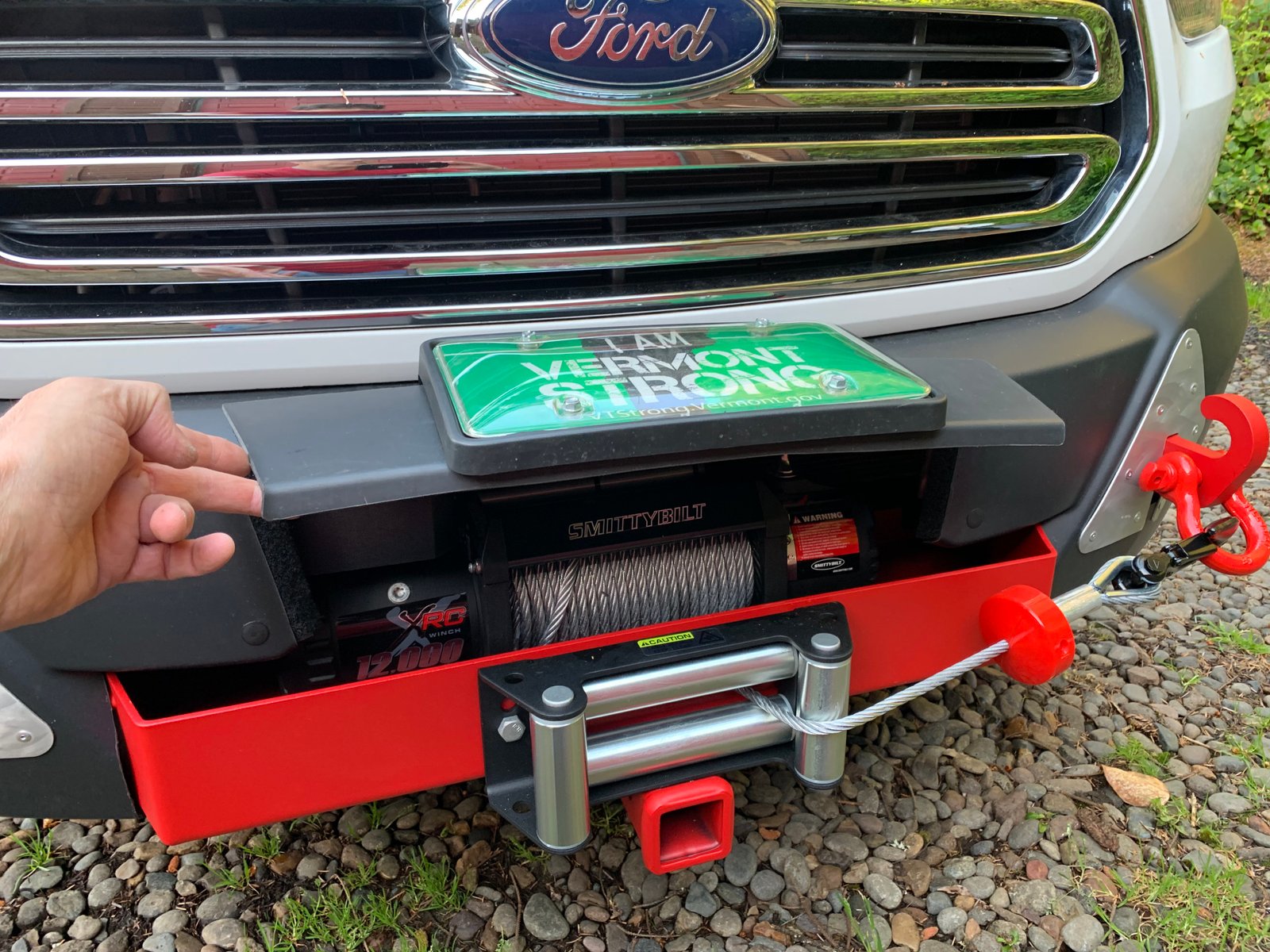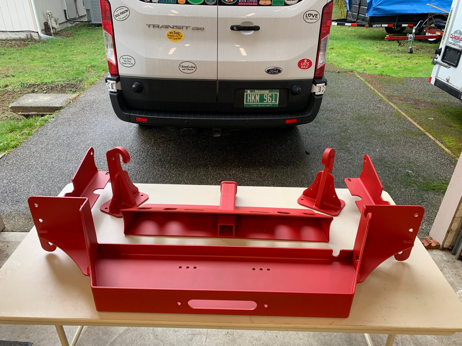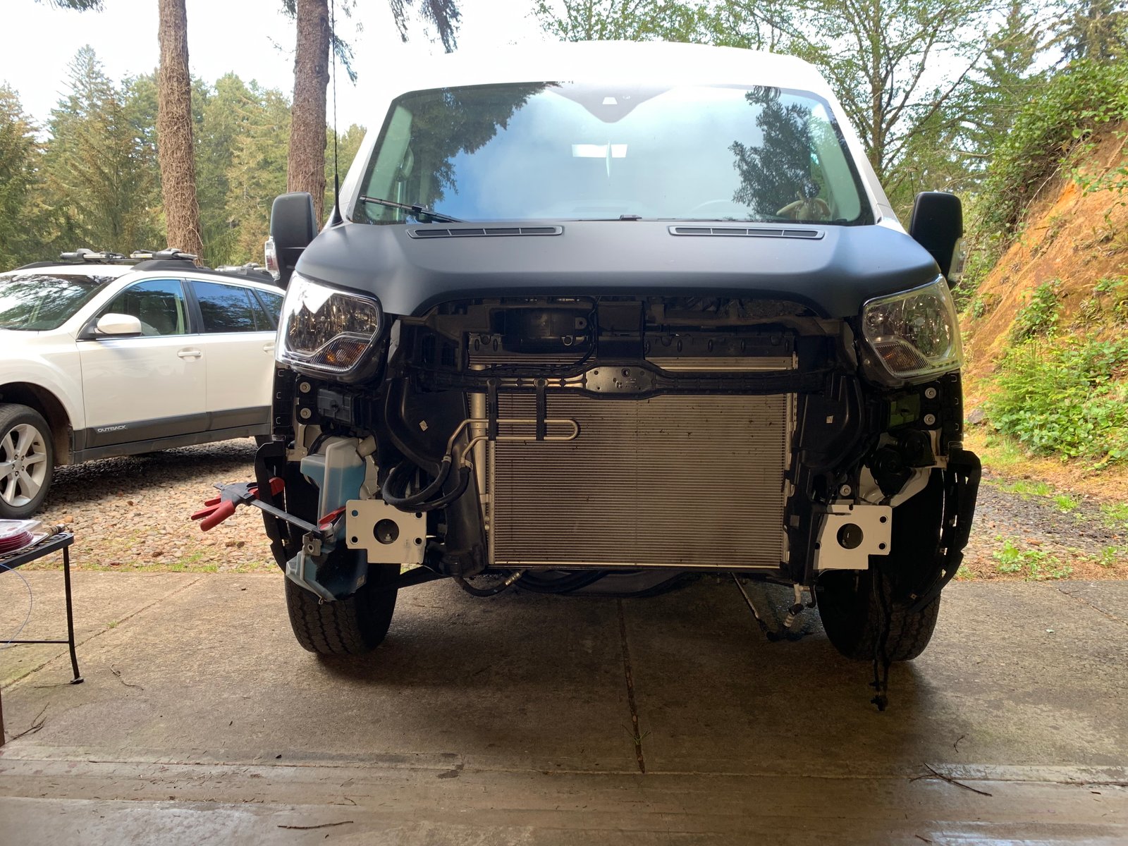 Within the first week that I began the Upfit, I had purchased a number of items that I was simply not sure when I’d get to them, but I wanted them ready to go when I did. Two of those items were the Lift Kit (yet to be installed) and the Winch Mount from Van Compass. I had elected to go with a winch over the 4×4 option as I wasn’t ready to drop $18k on a 4×4 conversion – just yet, but I wanted to be sure I could get myself out of trouble if I found myself stuck anywhere. There are two options for a winch on the Ford Transit. The Aluminess system replaced the entire front bumper – which looks nice, but it exposes the engine compartment, which I didn’t like. The other was a Winch mount from Van Compass that retained most of the front bumper. I liked how this looked – mostly.